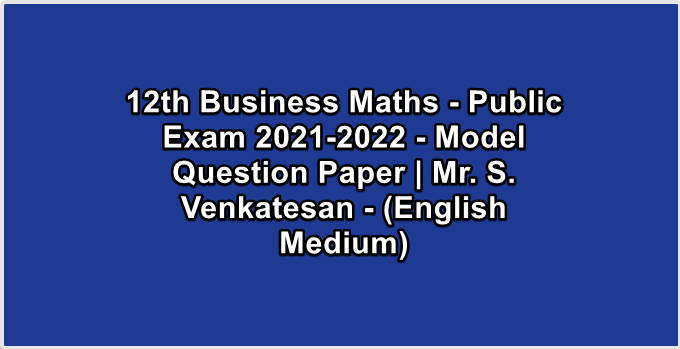 12th Business Maths - Public Exam 2021-2022 - Model Question Paper | Mr. S. Venkatesan - (English Medium) - Preview & Download